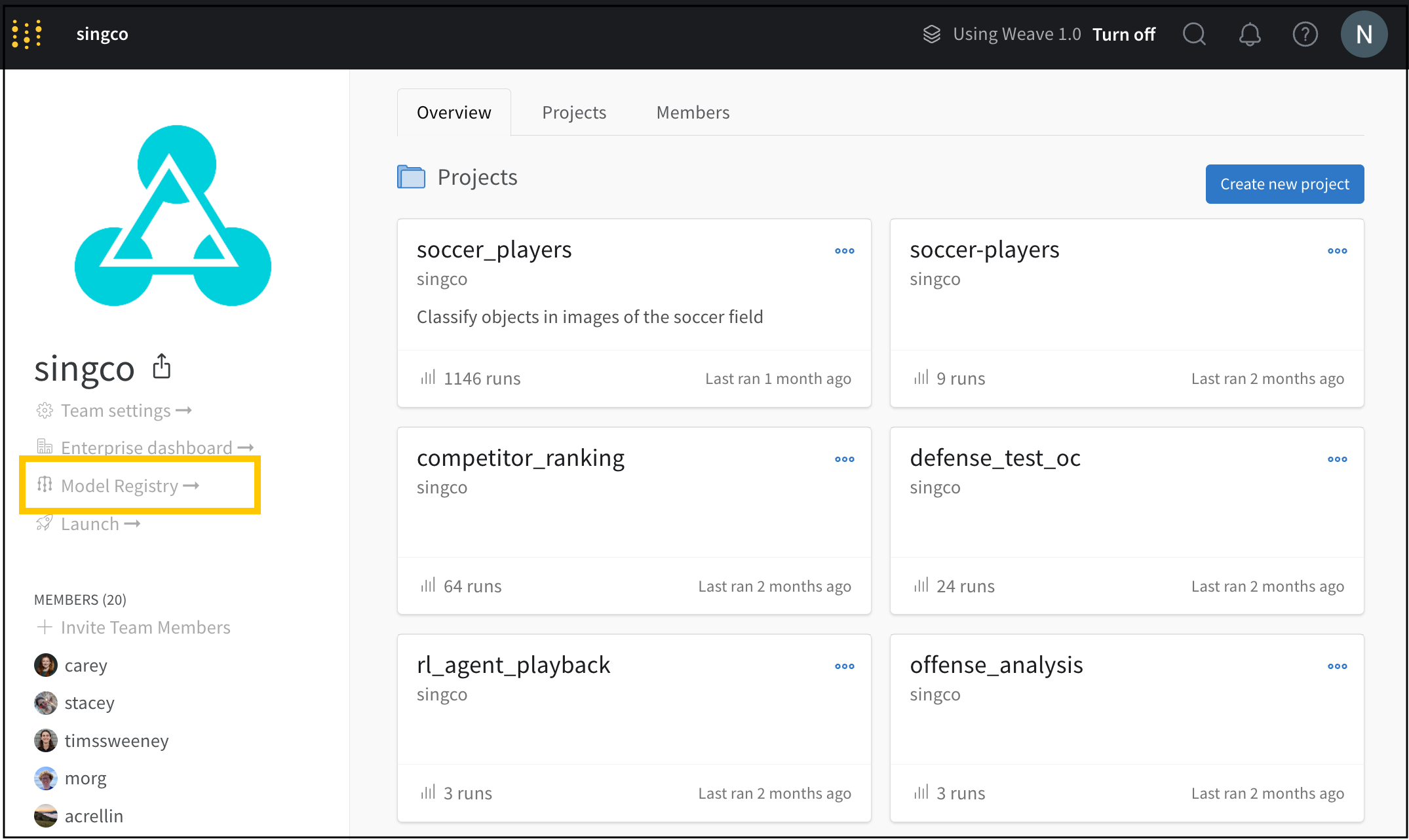 Model Registry App でインタラクティブに registered model を作成します。- Model Registry App に移動します: https://wandb.ai/registry/model。